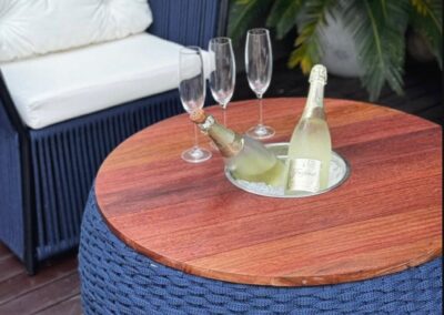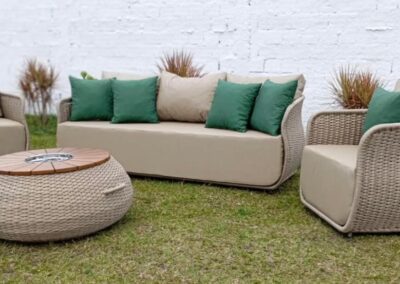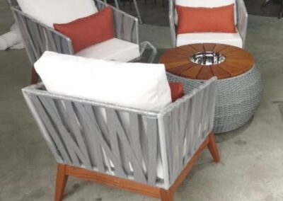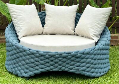 - Móveis em fibras naturais e sintéticas: Trabalhamos com materiais como fibra sintética, corda náutica, vime e junco, criando peças que combinam beleza, conforto e resistência às intempéries.